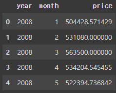 그리고 연도와 달을 그룹화하여 가격 평균을 가져왔습니다.